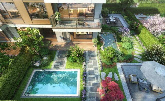 下叠精髓是亲近自然的庭前绿地,面积可观,延展出大家庭多种居住的可能性。